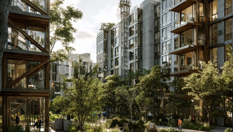 The solution lies in industrialized construction: prefabricated modular units, panelized systems, and mass timber mid-rise buildings can cut construction timelines 20–50%, reduce waste, and improve quality (McKinsey, 2019; 2025). Mass timber allows for low-carbon, repeatable structures, enabling faster production without sacrificing design or livability.