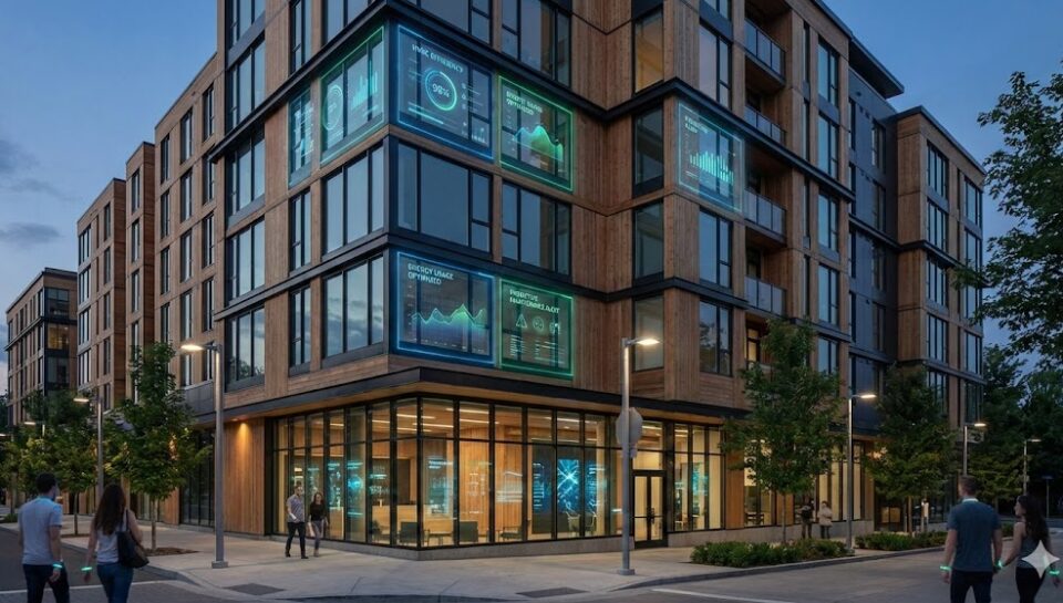 AI platforms (BrainBox AI, 75F, Aquicore) monitor building systems, predict failures, and schedule interventions automatically — extending equipment life and generating green-premium value that investors recognize.